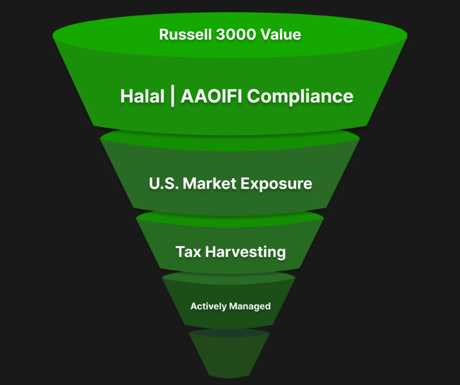 Our technology unwraps the index into a separately managed account where you own the individual Halal securities.